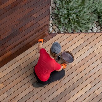 Het oppervlak met het nieuw gecreëerde betoneffect kan nu met een toplaag worden afgewerkt. Verzegel het oppervlak eerst met de Bluefin Primer-Concrete + 10 % Aqua-PUR-Härter (100 - 120 g/m2), die voorkomt dat het cement verkrijt bij waterbelasting. Laat uw werk nog eens 3 uur drogen en werk het ten slotte af met laag Aqua-Top Antiscratch met glanslaag G5 in een laagdikte van 80 g/m2 + 10 % Aqua-PUR-Härter.
